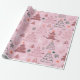 Papier Cadeau Arbres de Noël Étoiles Snowflakes Pink Noël