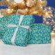 Papier Cadeau Arbres de Noël peints à la main Aqua Blanc Bleu Sa