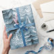 Papier Cadeau Arbres de Noël peints Blue ID1008