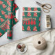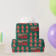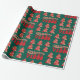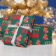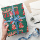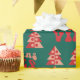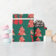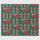 Vibes rétro amusantes et festives enveloppant du papier avec des arbres minimalistes rouges, verts et or.