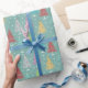 Papier Cadeau Arbres de Noël rétro Noël Turquoise