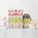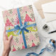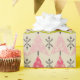 Arbres de Noël abstraits roses et verts avec papier d'emballage pour flocons de neige.