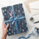 Papier Cadeau Arbres or et blanc, Étoiles sur Arrière - plan ble