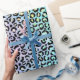 Stylish Rainbow Iridescente Gradient and Leopard Spots Motif avec des couleurs violet et bleu