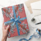 Papier Cadeau Argent Bleu Épinette Bleu Baies Rouges Lattice Rou