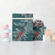 Papier Cadeau Argent Bleu Épinette Rouge Ilex Berries Lattice Tu