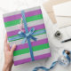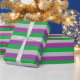Papier Cadeau Argent, violet et bandes vertes