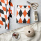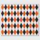 Un papier d'emballage conçu avec un motif harlequin noir, orange vif et blanc en très grande taille. Customisez la couleur blanche de l'arrière - plan, la taille du motif, entre autres options.