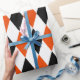 Papier Cadeau Arlequin noir, orange vif et blanc extra-large