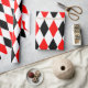 Un papier d'emballage conçu avec un motif arlequin rouge, noir et blanc en très grande taille. Customisez la couleur blanche de l'arrière - plan, la taille du motif, entre autres options.