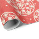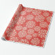 Un joli papier d'emballage de vacances ou d'hiver présente des rondelles de neige blanc sur un arrière - plan rouge.