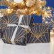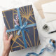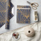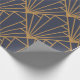 Ce papier d'emballage a un design art déco de diamants et de triangles en or sur un champ de bleu.