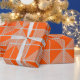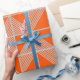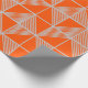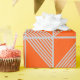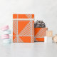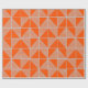 Ce papier d'emballage a un design art déco de carrés divisé en deux par des lignes diagonales d'argent. Les carrés sont ensuite piqués ensemble sur un champ d'orange.