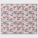 Papier Cadeau Art Populaire Nordique Oiseaux Et Fleurs Bleus Rou