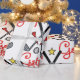 Fer de golf traversé, tee - shirts rouges et balle sous étoile jaune.