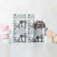 Inspecred by the Arts and Crafts tiles produced in Bucks County, Pennsylvania at the start of the 20th Century, the repeating pattern on this premium wrapping paper feprofile of a shy, kneeling angel holding a small bouquet of white lilies & purple iris set agst pale-gray de boulangerie Perfect for venin celebrating baptism, 1st Communions, confirmation ou tout Christian holiday.