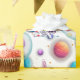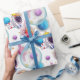 Featuring a cute astronaut floating among colorful planets, stars, and a magical galaxy background, this gift wrap is perfect for space-themed birthday parties.