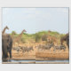 Eléphant, girafe et zèbre dans un trou d'eau du parc national d'Etosha, Namibie