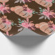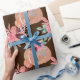 Ce joli emballage cadeau à thème d'automne présente un arrière - plan marron foncé avec des citrouilles d'aquarelle peints et des bouquets floraux parfaitement roses comme accents. Des plantes vertes complètent ce motif mignon et sucré qui est parfait pour un cadeau baby shower ou une occasion spéciale.