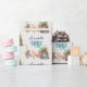 Ce papier d'emballage magique et fantaisiste de baby shower présente un thème forestier enchanté. L'image d'une porte de fée dans un petit jardin de champignons est placée en bas, avec une fée qui flotte au-dessus. Des fleurs et des champignons sont disposés sur le fond. L'arrière - plan est de couleur crème douce.