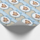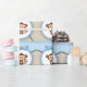 Papier d'emballage pour baby shower de singe brun et bleu bébé adorable.