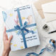 Papier Cadeau Baby shower Eléphant bleu aquarelle du texte perso