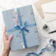 Doux petit lapin lapin d'aquarelle dans un panier en osier et fleurs bleu bébé garçon avec une pointe de jaune sur un arrière - plan bleu sucré. Si mignon pour cette douche de bébé garçon. Donc unique d'envelopper tous les cadeaux dans cet emballage cadeau personnalisé. 100% de satisfaction client avec "Zazzle"
