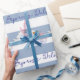 Papier Cadeau Baby Stork Wrapping Paper Blue & White Stripe