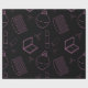 Baguette à lèvres, peigne et boîte à poudre, broussailles, parfums et arcs. Rose sur noir. Motif transparent