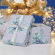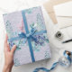 Un joli papier cadeau orné de baies bleues et de plumes bleues scintillantes sur un papier à texture rugueuse de couleur violet foncé