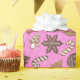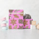 Ce papier d'emballage de Noël a un Baking Gingerbread Conception de biscuits avec un motif rose deux tons d'éléments de cuisine rétro arrière - plan. Huit biscuits en pain d'épices peints à la main avec différents motifs de glaçage blanc. Un super mignon motif de Noël pour égayer tous les cadeaux pour sous votre sapin de Noël. Vous pouvez rendre le motif plus petit ou plus grand.