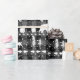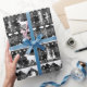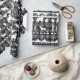 Un élégant papier d'emballage neutre de vacances avec un motif nordique de chandail d'hiver en plaid de buffle gris et noir, avec des animaux d'hiver blancs.