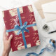 Papier Cadeau Balise Personnaliser le nom Red Retro Reindeer de