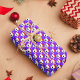 Ce papier d'emballage de Noël présente des balles de football en casquette Père Noël avec des flocons de neige qui tourbillonnent autour d'un arrière - plan violet de Noël.