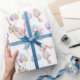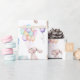 Un emballage cadeau parfait pour l'anniversaire d'une petite fille. Le plus mignon lapin rose pastel flottant dans le ciel avec des ballons aux jolies couleurs