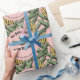 Ce amusant papier d'emballage rose "Go Bananas !" présente des bouquets de bananes jaunes dessinés à la main et des feuilles de bananes tropicales vertes contre un arrière - plan rose pâle avec des détails subtils de gouttes de pluie dans un rose plus clair. Personnalisez avec un titre (Joyeux anniversaire, Joyeux anniversaire, Félicitations, etc.) et votre nom.