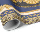 Bandana imprimé sur arrière - plan noir et bleu, chaînes et câbles d'or, frise de méandre grecque, parchemins baroques, coquillages Rococo et pierres de joaillerie saphir. Écharpe, mouchoir, mouchoir, tapis, tapis