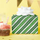 Ce papier d'emballage festif et amusant est polyvalent et peut être utilisé pour donner des cadeaux ou des projets artistiques et artisanaux. Il est idéal pour toutes les occasions telles que vacances, anniversaires, mariages, douches nuptiales, baby showers, anniversaires ou cadeaux généraux. Le design présente des rayures diagonales vert clair et foncé sur un arrière - plan argenté. Parfait pour Noël.
