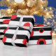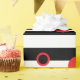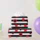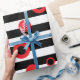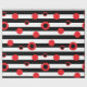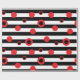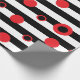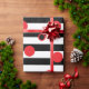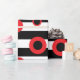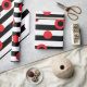 Papier Cadeau Bandes noires et blanches et cercles rouges motif
