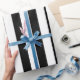 Un papier d'emballage avec un motif rayé moderne noir et blanc.
