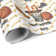 Les amateurs de basket-ball aimeront ce papier d'emballage d'anniversaire! Il présente un design amusant et coloré avec les joueurs de basket-ball préférés de tous. Ce papier est sûr de rendre tout cadeau d'anniversaire très spécial.