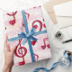 Papier Cadeau Basse, Clefs En Arbre, Notes Musicales, Coeurs Rou