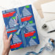 Des voiles de Noël volent au-dessus du pont de ce voilier de vacances. Couleurs vives vert et rouge contre mer foncée de bleu ont mis ce papier d'emballage de Noël comme distinctif. Parfait pour les marins de votre équipage.