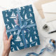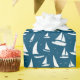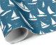 Bateaux à voile blanc sur papier d'enveloppement marin bleu profond. Emballage cadeau bleu marine amusant imprimé avec voiliers blancs et yachts. Jolie enveloppement cadeau à thème nautique.