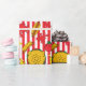 Cool grill out fête d'anniversaire biscuit papier d'emballage d'été imprimé avec des hamburgers dessinés à la main, hot dogs, ketchup et bouteilles de moutarde sur bandes rouges et blanches. Parfait pour les barbecues d'anniversaire et les grillades