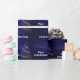 Enveloppement cadeau bleu étincelant pour Noël. Customisez votre propre nom de famille.