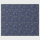 Ce papier d'emballage présente un beau motif de ville d'hiver aux couleurs bleu et or.