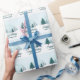Un magnifique paysage hivernal avec pins verts turquoises et terrain couvert de neige sur papier d'emballage de vacances personnalisé. Customisez ce papier d'emballage Happy Holidays pour les cadeaux de Noël de votre famille.