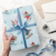 Papier Cadeau Beaux animaux Ski et snowboard sur bleu