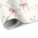 Sur un fond crémeux avec un motif de rubans et de noeuds roses.
